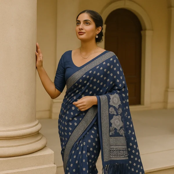 Paired with a designer blouse, this saree balances classic charm with a modern finish. Easy to drape and flattering on all body types, it’s a dependable choice when you want to look polished, confident, and effortlessly stylish.