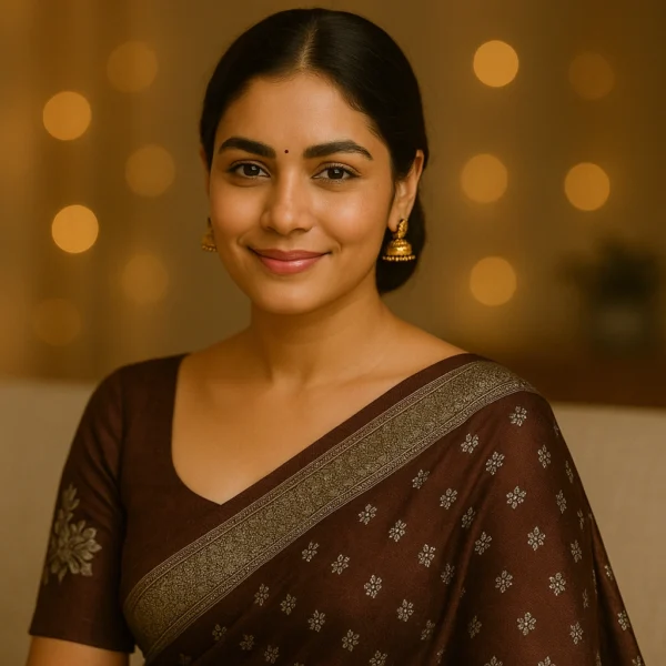 Paired with a designer blouse, this saree brings together traditional grace and modern styling. Easy to carry, easy to drape, and versatile for multiple occasions, it’s a reliable choice when you want to look polished, confident, and effortlessly elegant.