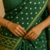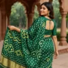 This Green Gajji Silk Bandhani Saree tells its story through color, texture, and detail. Crafted from lustrous Gajji silk and tied by skilled artisans of Kutch, every dot, every pattern, is made by hand — not printed, not rushed, but patiently created.