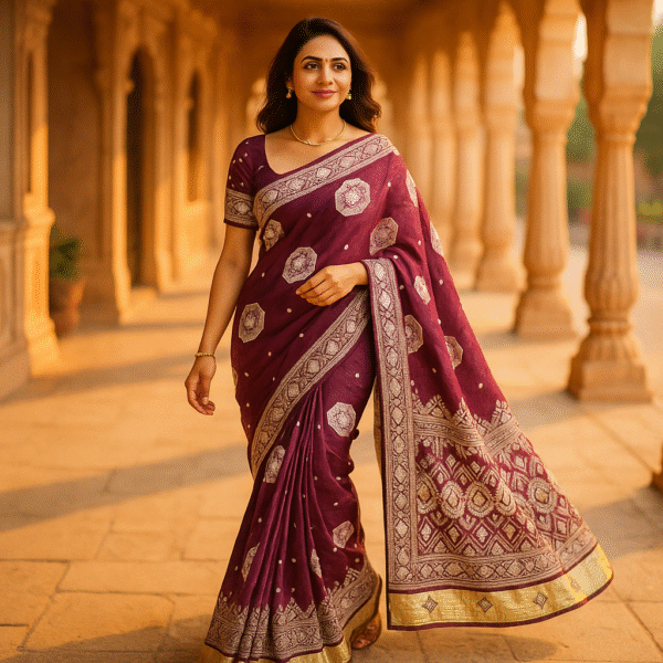 ✔ Specific Benefit: Pure Banarasi elegance with light, breathable comfort