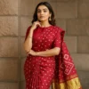 The color is a festive, deep, bridal red — symbolic of joy, love, and celebration. The Gajji silk fabric flows with a natural sheen, soft to touch and elegant in motion.