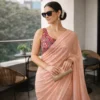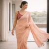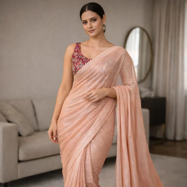 Be the first to review “Soft Peach Shimmer Chiffon Saree – Lightweight Party & Festive Wear for Women”