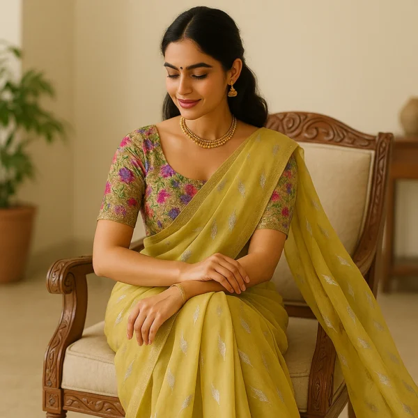 This Yellow Chiffon Saree with Chikan Blouse is designed for women who love light fabrics, soft colors, and understated elegance. The premium chiffon flows beautifully, giving you a flattering drape while staying incredibly comfortable even after hours of wear.